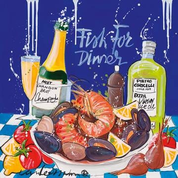 Obraz (Fish for dinner) je Umělecký tisk od autora ( El van Leersum ). Formát díle je 40 cm x 40 cm. Reprodukce je vytištená na kvalitní materiál špičkovými stroji v Německu