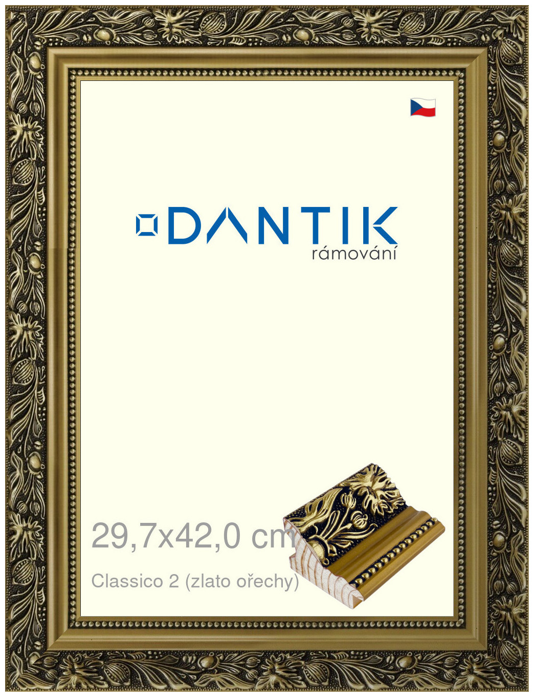 DANTIK ráměček 29,7x42 Classico 2 (zlato ořechy) se vyrábí ručně po jednom ručně v naší dílně v momentě objedání.
