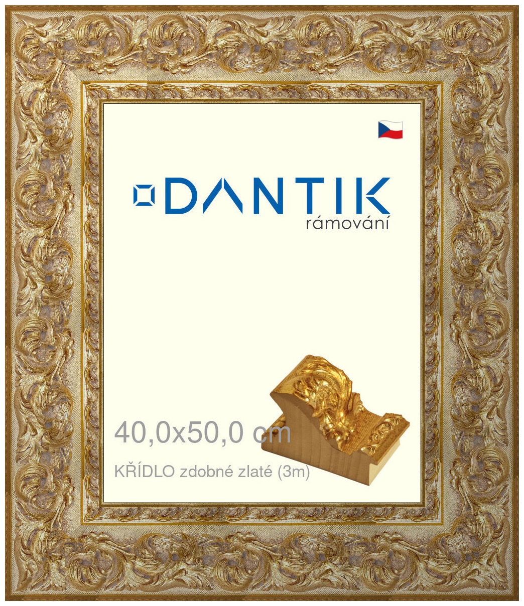 DANTIK rám na obraz 40x50 | KŘÍDLO zdobné zlaté (Sklo Čiré)objednávky prijaté do piatku do 10:00 budú expedované ve stredu 19 Ks481,00 EUR/ Ks391,06 EUR bez DPH